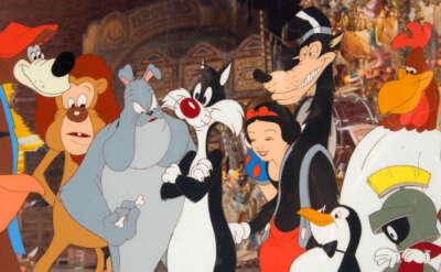 Although the Looney Tunes and Walt Disney cartoons were rivals, both casts of characters appeared widely in what Disney film?